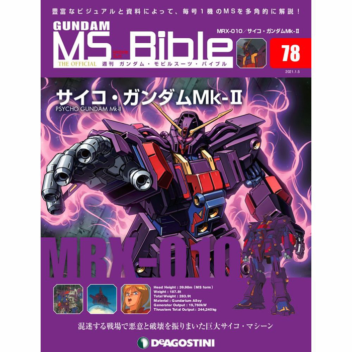 第78号では、混迷する戦場で悪意と破壊を振りまいた巨大サイコ・マシーン「サイコ・ガンダムMk-II」を特集。