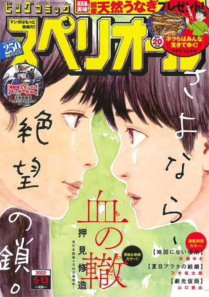 このほか、累計165万部(紙+電子)突破の話題作「血の轍」(押見修造)が表紙と巻頭カラーを飾り、大ヒット作「町田くんの世界」作者の最新作である「地図にない場所」(安藤ゆき)が連載再開。