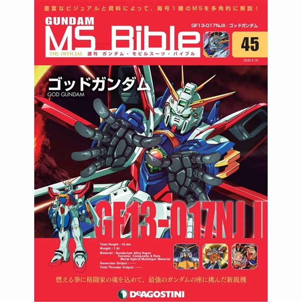 第45号では、燃える拳に格闘家の魂を込めて、最強のガンダムの座に挑んだ新鋭機「ゴッドガンダム」を特集。