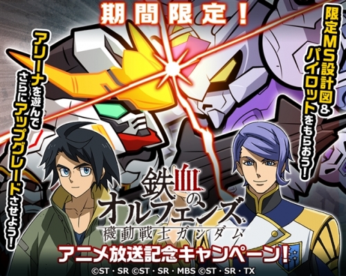 『鉄血のオルフェンズ』第2期放送開始を記念して、プレゼントがもらえるキャンペーンもスタートした。イベントミッションでは★3「ガンダム・バルバトス」が、イベントログインボーナスでは★3「ガンダム・キマリス」が手に入る。