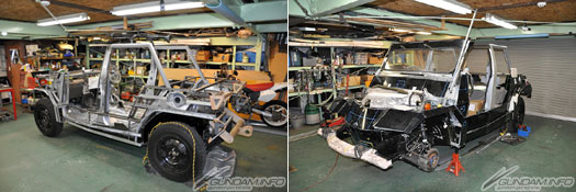 『機動戦士ガンダム MS IGLOO 2 重力戦線』などに登場する、地球連邦軍で広く運用された「M72 1/2tトラック ラコタ」と、ジオン公国軍の軽機動車「サウロペルタ」。 有志による「プラモデルを1/1でつくる会」が、サンライズの全面協力のもと1/1スケールで製作したこの2輌の“実車”写真集が、いよいよ7月30日(土)に発売される。