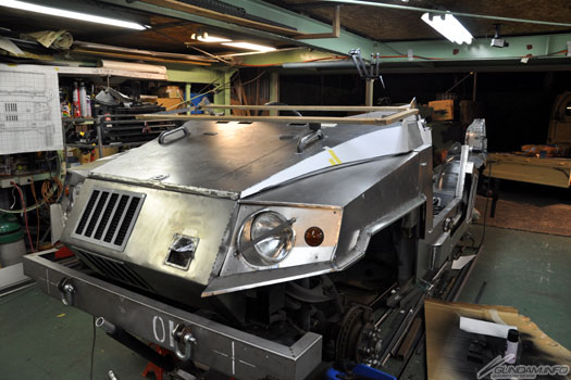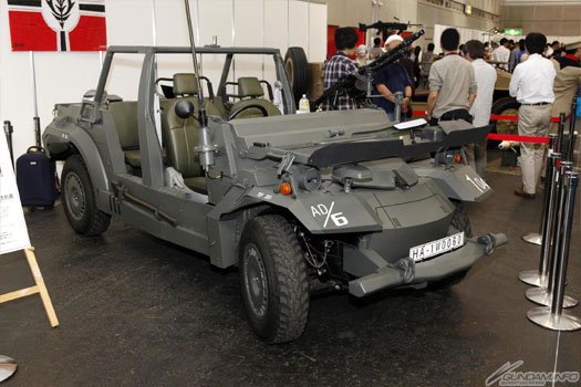 ▲昨年の静岡ホビーショーにて展示された「1/1サウロペルタ」が今回も登場。連邦軍とジオン軍の軽機動車輌が並ぶ様は壮観の一言。