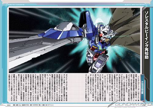 また、「軌道エレベーター」や「イノベイター」などのキーワードの説明や、ソレスタルビーイングが行った戦闘の記録も収録。TV本編を観ただけでは理解しきれない壮大な『機動戦士ガンダム00』の世界を読み解くのに必携の1冊となっている。