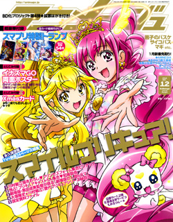 劇場版『絵本の中はみんなチグハグ!』が大ヒット公開中の『スマイルプリキュア!』が、表紙&巻頭特集に登場です♥ シリーズ9年目にして、初めて『プリキュア』がアニメ誌の表紙を飾りました☆ 特集では、本邦初プリキュア5人集合の座談会を独占掲載! 劇場版の黒田成美監督インタビューや、TV版・大塚隆史監督×キャラクターデザイン・川村敏江さんのスペシャル対談、大塚&川村コンビが歴代プリキュアワークスを振り返るメモリアルトークに歴代黄色キャラの魅力考察などなど、アニメージュならではの濃い企画を大ボリュームで展開しています。加えて連載コーナー「設定資料ファイル」でも『スマプリ』をフィーチャー、付録に本誌オリジナル『スマプリ』トランプと川村さん描きおろしの「プリンセスフォーム集合ピンナップ」も付いて、この号は『スマプリ』ファンにとって永久保存版の1冊です!! 応募者全員サービスも『スマプリ』の特製図書カード2種。絵柄はどちらも川村さん原画による「変身前」「変身後」の5人です♥ さらに、こちらも劇場版が話題の『イナズマイレブンGO』リバーシブルポスターも必見ですよ☆