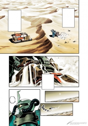 「サンダーボルト」本編は宇宙空間での戦争が描かれているが、外伝「砂鼠ショーン」では舞台を移し、一年戦争後の地上戦が繰り広げられる。