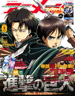 あの超話題作『進撃の巨人』が、ついに表紙に登場です!表紙を飾るのは主人公・エレンとリヴァイ兵長の2ショット☆このイラストはとじこみピンナップにもなっています。