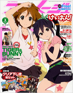 アニメージュ3月号は、懐かしの『けいおん!』が久しぶりに表紙に登場です!実は『けいおん!』はTVアニメ5周年☆しかも第1期のBlu-ray BOXが発売ということで、唯&梓が約1年半ぶりに表紙を飾っています。山田尚子監督のメッセージと、堀口悠紀子さん描きおろしのHTT全員集合ピンナップも付いてますよ♥このイラストは応募者全員サービス用の図書カードにもなっていますので、唯たちの想い出にたっぷり浸ってください。
