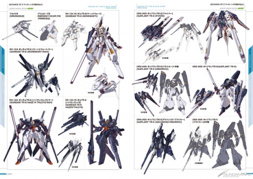本書は、1,300体以上のMS・MAの設定画稿を、設定資料・スペック・英文表記などの詳細なデータと共に掲載。『機動戦士ガンダム』から『ガンダムビルドファイターズトライ』、『ガンダム Gのレコンギスタ』、『機動戦士ガンダム THE ORIGIN』、さらには新作ゲームまで網羅されている。