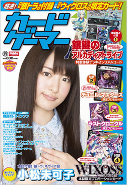 表紙には、「銀鍵のアルカディアトライブ」で声優をつとめる小松未可子さんが登場。巻頭特集には「銀鍵のアルカディアトライブ」が、センター特集には「ラストクロニクル」が掲載される。そして「ガンダムウォーネグザ」ページでは、第10弾デッキのほか、BASED BOOSTER PACK「サイクルC」の新公開カードも攻略。さらに、デジタルカード研究所では「機動戦士ガンダム U.C.カードビルダー」の最新情報が掲載される。