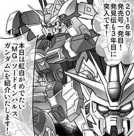 ガンダムインフォで好評連載中のレポートマンガ 「SDガンダムいんふぉ」でおなじみの森本がーにゃ先生が、毎回様々なガンプラをマンガで紹介するコーナー。第26回は『機動戦士ガンダムSEED DESTINY』より「MG ソードインパルスガンダム」を紹介する。