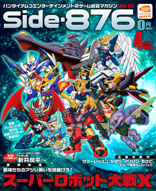 表紙と巻頭特集には、3月29日(木)発売予定のPS4/PS Vita用ソフト「スーパーロボット大戦X(エックス)」が登場。待望の作品や機体が続々参戦する本作の魅力が紹介されているほか、「876インタビュー」には本作でイオリ役を演じている新井良平さんが登場。