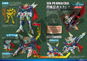 「SDガンダム ザ・ラストワールド」とは、サンライズが運営するウェブサイト「矢立文庫」にて、2016年11月よりスタートした新たなSDガンダムサーガ。閃風忍者エクシアや龍帝ユニコーンなどの新キャラクターに加え、SDガンダム外伝やSD戦国伝に登場するキャラクターたちが活躍する。