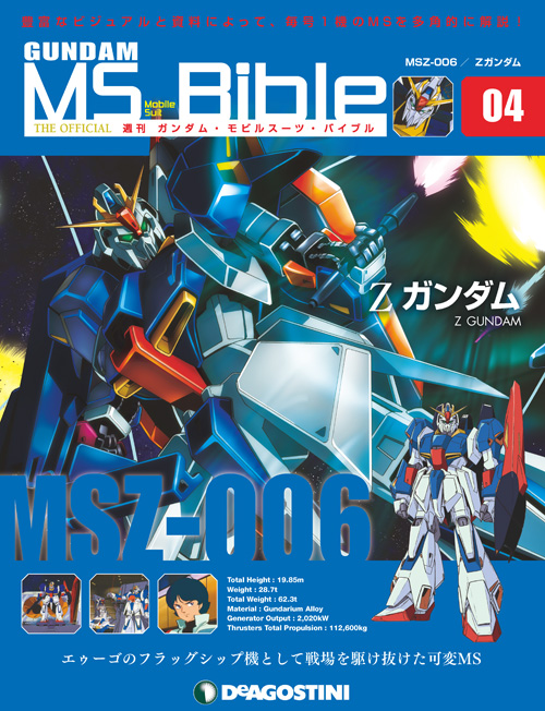 第4号はエゥーゴの中核たる第三世代MSの代表格「MSZ-006 Zガンダム」を大特集!はじめてのテレビ放映から30年以上が経過しても、いまだ衰えぬ人気を誇る機体です!