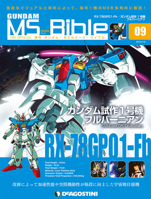 第9号は大破した状態から蘇った宇宙戦仕様MS「RX-78GP01-Fb ガンダム試作1号機フルバーニアン」を特集。コンペイ島宙域でガンダム試作2号機と激突したあの機体です!
