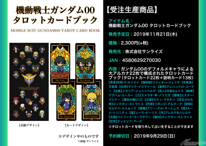 エビテン、アニメイトオンラインなどで好評予約受付中の「機動戦士ガンダム00 タロットカードブック」は9月29日(日)で受付終了となる。