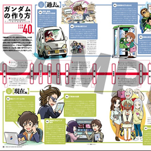 本書は、『機動戦士ガンダム』放送開始から40周年を記念したもので、表紙を飾るのは「機動戦士ガンダム40周年プロジェクト」のキービジュアル4枚。シリーズ40年の歩みはもちろん、アニメーションの作り方から設定画・原画などを紹介する「ガンダムの作り方」、主題歌と劇伴の40年をまとめた「ガンダムの音楽」に加え、80名以上のスタッフ&キャストから寄せられた色紙も掲載されている。