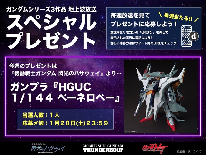 「HGUC ペーネロペー」が抽選で1名にプレゼントされ、応募受付は1月28日(土)23:59までとなっているので、奮って応募してみよう。