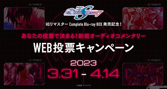 本キャンペーンでは、『SEED DESTINY HDリマスター』全50話の中から投票されたエピソードより4話を厳選し、新規オーディオコメンタリーを実施。本アイテムに新規特典として収録する。