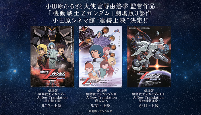 富野由悠季監督がふるさと大使を務める神奈川県小田原市の小田原シネマ館で『機動戦士Ζガンダム』劇場版三部作の連続上映が決定した。