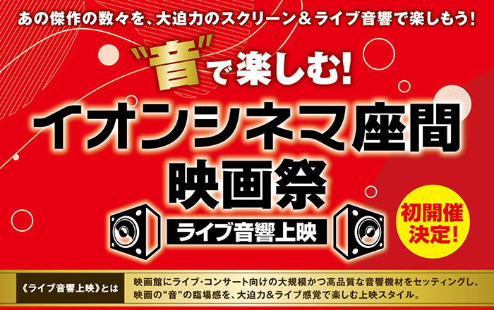 「ライブ音響上映」は、「映画を“音”で楽しむ!」をコンセプトに、劇場にライブ・コンサート向けの大規模かつ高品質な音響機器をセッティングし、映画の“音”の臨場感を、大迫力、ライブ感覚で浴びるように楽しむことができる上映スタイル。