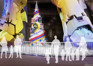今年はガンダムシリーズの45周年をテーマに、ガンダムを象徴するトリコロールカラーで照らし出された立像と、45年の歴史を感じさせるたくさんのオーナメントで飾りつけられたツリーが登場。多くの人が楽しめるフォトスポットとなっている。
