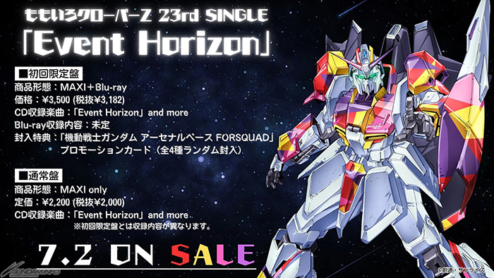 初回限定盤に「機動戦士ガンダム アーセナルベース FORSQUAD」描き下ろしプロモカード封入!ももクロ新シングル「Event Horizon」7月2日発売決定!