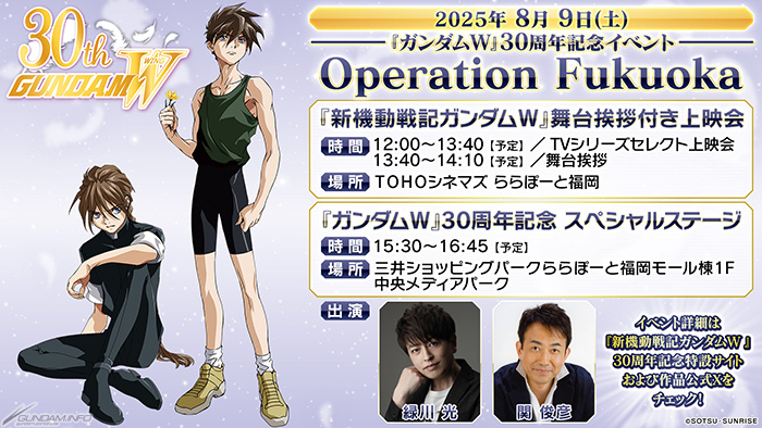 「『ガンダムW』30周年記念イベント Operation Fukuoka」が、8月9日(土)にららぽーと福岡にて開催されることが決定した。