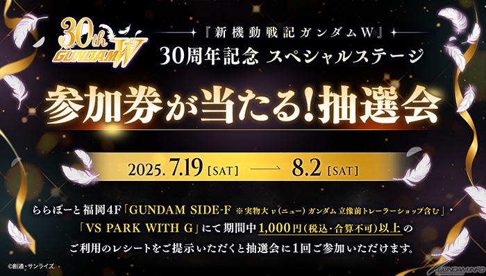 以下抽選会で特賞『ガンダムW』30周年記念 スペシャルステージ参加券に当選した方が参加できます。
