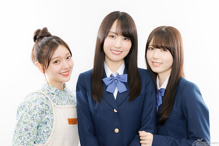 ▲ナツ役の尾本侑樹奈(LINKL PLANET)さん、高嶺瑠夏役の賀喜遥⾹(乃木坂46)さん、瀬⼾流歌役の筒井あやめ(乃木坂46)さん