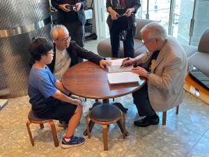 「描く人、安彦良和」巡回展来場者10万人目のファンにサインを贈る場面も!