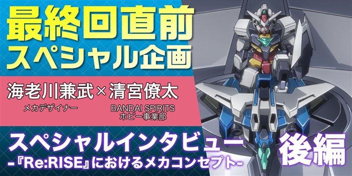 8月27日(木)にいよいよ最終回を迎える『ガンダムビルドダイバーズRe:RISE』の公式サイトにて、スペシャルインタビュー後編「-『Re:RISE』におけるメカコンセプト-」が、本日8月23日(日)に公開された。