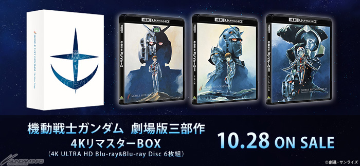 『機動戦士ガンダム』劇場版三部作を4Kリマスター化した「機動戦士ガンダム 劇場版三部作 4KリマスターBOX」が、本日10月28日(水)に発売される。価格は30,000円(税抜)。