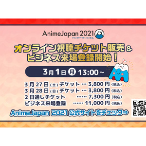 オンライン視聴チケットの料金は、1日券が3,800円(税込)、2日通し券が7,300円(税込)となっており、両日とも24時間のアーカイブ配信視聴が可能。一日中AnimeJapanを楽しむことができるので、ぜひとも参加してみよう。