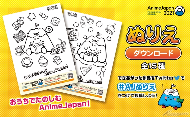ぬりえ参加作品には『機動戦士ガンダム』をふくむ全15作品がラインナップし、Twitterで「#AJぬりえ」をつけて出来上がった作品を投稿すると、AnimeJapan公式サイトに作品が集る、子供から大人まで楽しめる企画となっている。