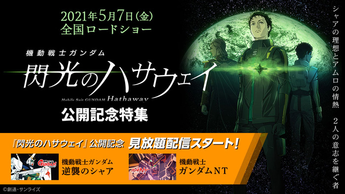 アニメ配信サービス「バンダイチャンネル」では、『機動戦士ガンダム 閃光のハサウェイ』の公開を記念し、『機動戦士ガンダムNT』と『機動戦士ガンダム 逆襲のシャア』の見放題配信がスタートした。