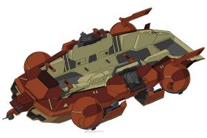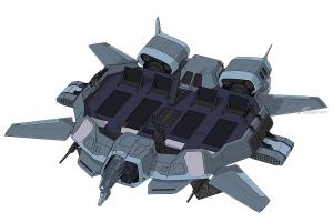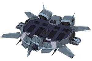 地球連邦軍の最新式SFS(サブ・フライト・システム)。モビルスーツを並列配置で最大2機搭載できるスペースを機体上面に設けており、垂直離着陸も可能。