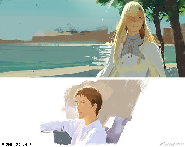 今回公開されたのは、ダバオの街並みやペーネロペーが海に沈む姿、恐ろしい雰囲気を感じるモビルスーツの闘いなど、繊細なタッチの中に力強さも感じられるイメージイラスト15枚。