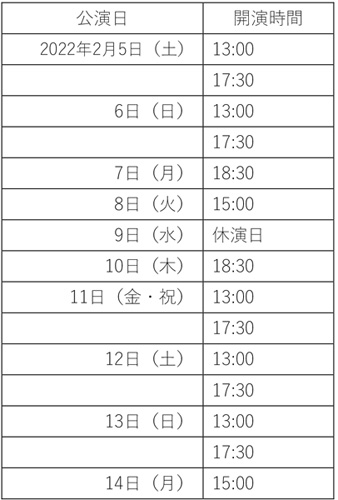 ※新型コロナウイルスの感染状況とそれに伴う政府および関係機関等の方針にともない公演の延期または中止する場合もございます。
