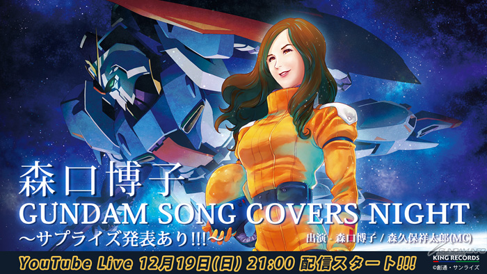 “大人のためのガンダムソングカバーアルバム”「GUNDAM SONG COVERS」シリーズを歌う森口博子さんが出演する「GUNDAM SONG COVERS NIGHTS ~サプライズ発表あり!!!~」と題した配信が、12月19日(日)21:00よりガンダムチャンネルでプレミア公開される。