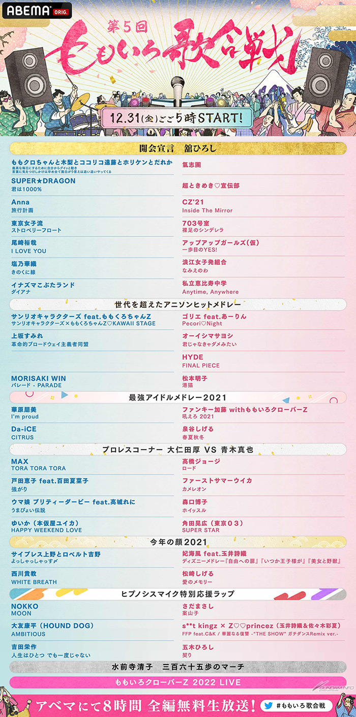 ■ABEMA『第5回 ももいろ歌合戦~届け!希望の彼方へ~50組超え出場!年越し8時間無料生放送』