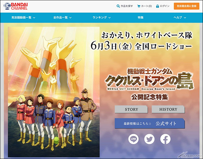 特集ページは、6月3日(金)から185館で全国ロードショーされる映画『機動戦士ガンダム ククルス・ドアンの島』の公開を記念して開設されたもの。