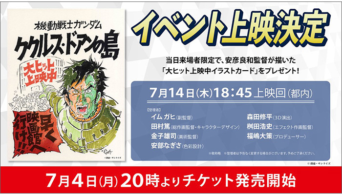 さらに、本イベントの来場者には、安彦良和監督描き下ろし「大ヒット上映中イラストカード」もプレゼントされる。