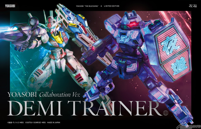 11月9日(水)に発売される「祝福」完全生産限定盤CDのジャケットは、描き下ろしイラスト。イラストには、完全生産限定盤CDに付属するYOASOBIコラボデザインのオリジナルガンプラ「デミトレーナー」と、YOASOBIコラボデザインのマーキングシールを纏った「ガンダム・エアリアル」が描かれている。付属するガンプラとマーキングシールのデザインは、YOASOBIの楽曲「優しい彗星」のミュージックビデオも手掛けた、門脇康平さんが担当。YOASOBIならではのワードが散りばめられた、ファン必見のデザインとなっている。