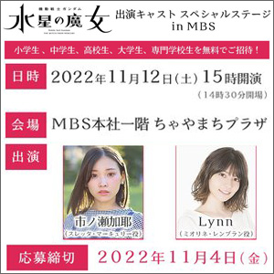 番組では、スレッタ・マーキュリー役の市ノ瀬加那さんとミオリネ・レンブラン役のLynnさんがパーソナリティを担当し、『機動戦士ガンダム 水星の魔女』の最新情報や魅力をお届けする。