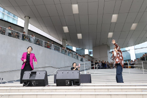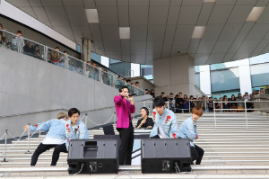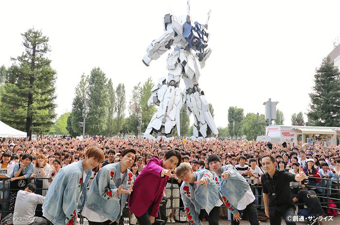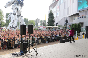 イベントは、実物大ユニコーンガンダム立像のあるフェスティバル広場にて実施され、『ガンダムビルドダイバーズ』オープニングテーマ「Diver's High」からスタート。初披露となった「So What?? feat. KENSUKE a.k.a. KEN THE 研究丸」や、好評発売中のPlayStation®4用ソフト「New ガンダムブレイカー」のテーマソング「Snatchaway」など、全8曲が熱唱された。