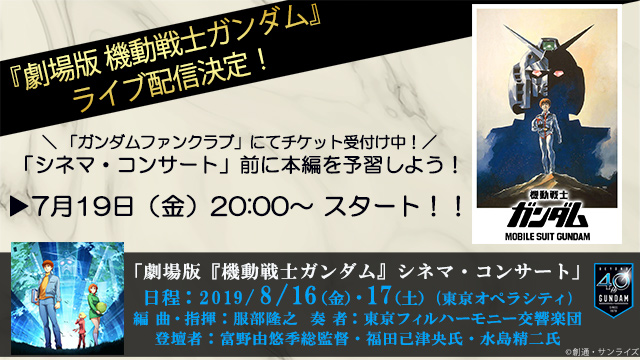 なお、「劇場版『機動戦士ガンダム』シネマ・コンサート」のチケットは、ガンダムファンクラブ2次先行が好評受付中。一般販売は、7月27日(土)よりスタートするので、あわせてチェックしておこう。