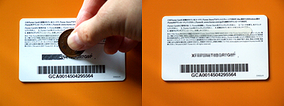 次に、硬貨などで銀色のマスク部分を削り取ってください。力を込めなくても大丈夫です。むしろ、マスクの下には大事な文字列が印刷されているので、軽いタッチでカード本体を傷つけないように要注意。