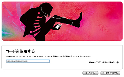そして、「コードを使用する」ボタンをクリックすると「ギフトカードまたはiTunes Cardのご利用にはアカウントが必要です」というポップアップが現われます。