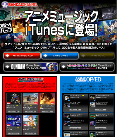 (9) バンダイチャンネルの特設サイトで は、「iTunes Store」で扱うタイトルが網羅されています。毎月、配信楽曲・映像は増えていきますので、こちらも要チェックです!