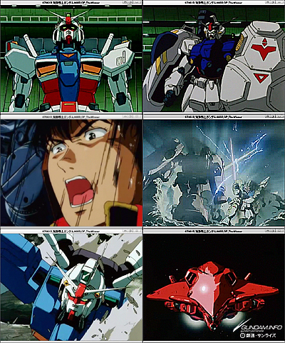 ガンダム作品の本編映像から抜き出された、ノンテロップ版のオープニング、エンディング映像クリップです。